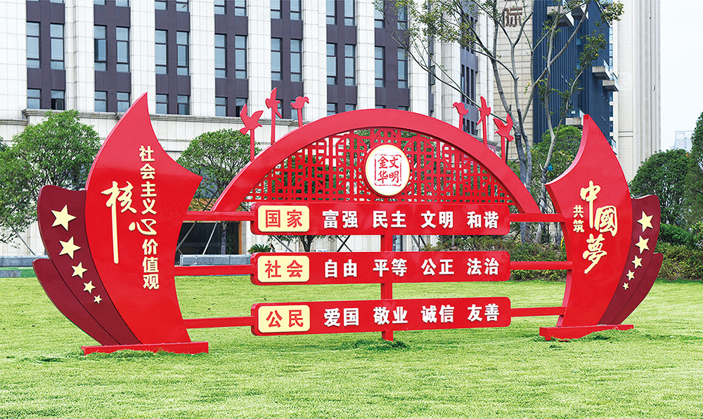 永康市全力以赴工貿有限公司始創于2008年,坐落于中國五金之都一一浙江永康,交通便利,廠房占地面積10000多平方米,是一家集研發、設計、生產、銷售于一體的規模型公共設備制造商。專業生產黨建價值觀、宣傳欄、鐵藝宣傳牌、導視牌、旗桿、鈦金字、垃圾桶、文化墻雕刻等。